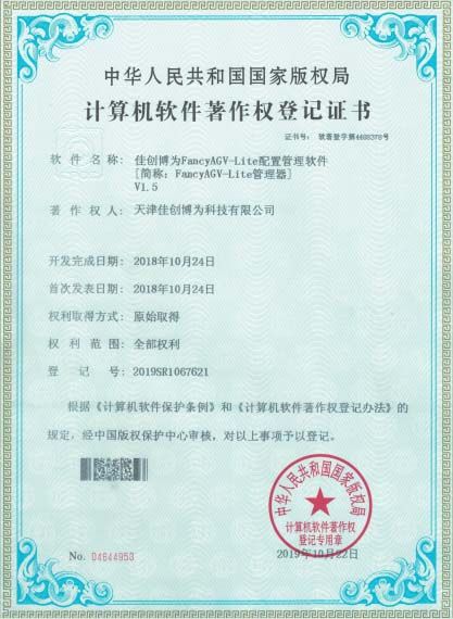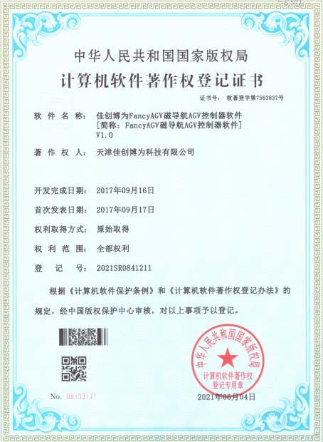 FancyAGV磁導航AGV控制器軟件著作權登記證書