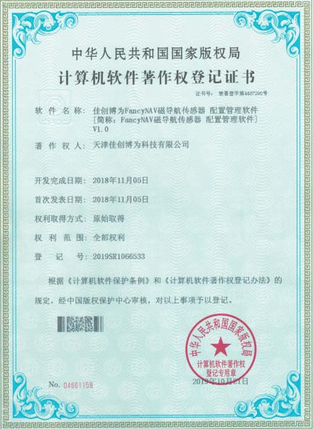 磁導航傳感器配置管理軟件著作權登記證書