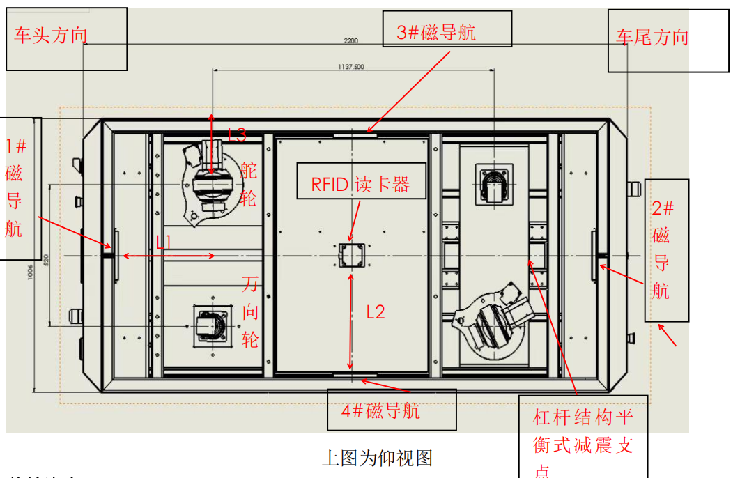 磁導(dǎo)航固定在車體安裝,杠桿結(jié)構(gòu)平衡式減震機構(gòu)安裝方式如下: